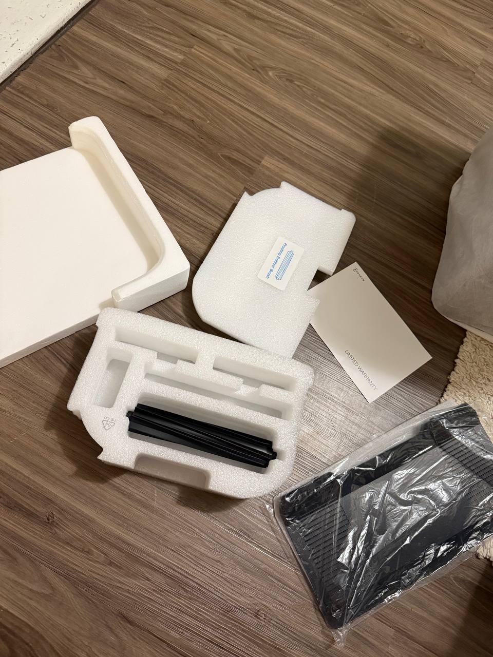 Gently used and fully functional. The box does not include a set of spare parts and accessories for the ECOVACS DEEBOT X2 Omni vacuum cleaner.